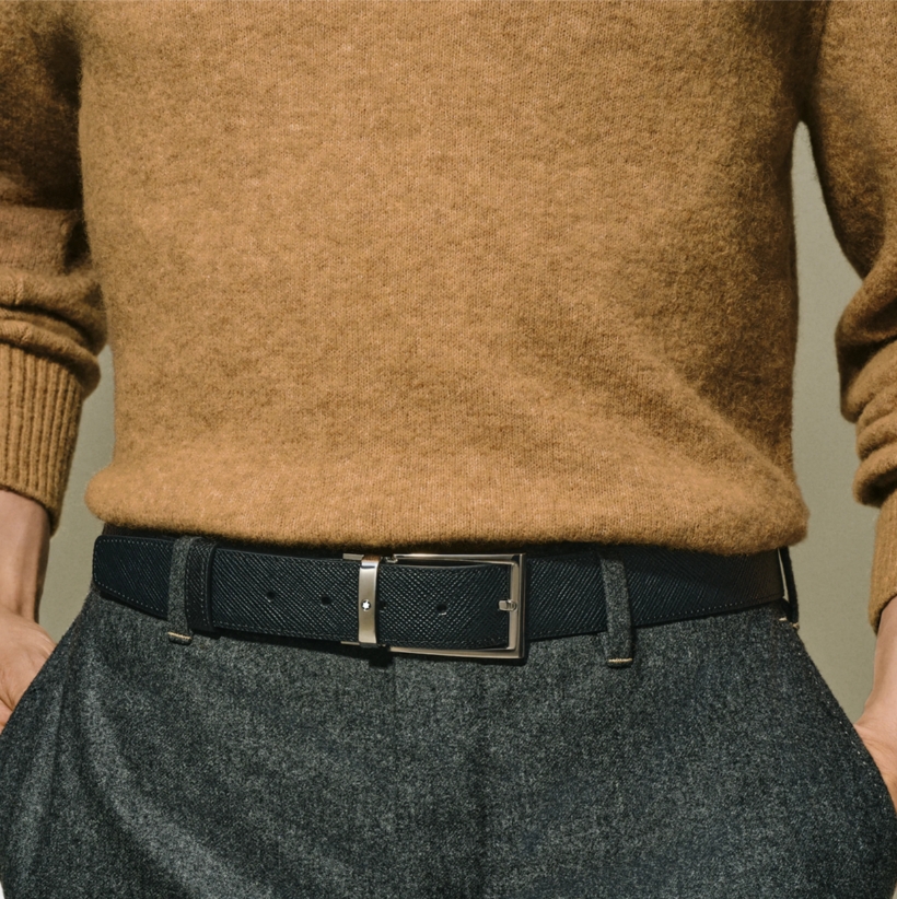 Двухсторонний мужской ремень Montblanc: кожа черного и коричневого цвета 35 мм от магазина премиальных ручек Premium Pens в Сызране.