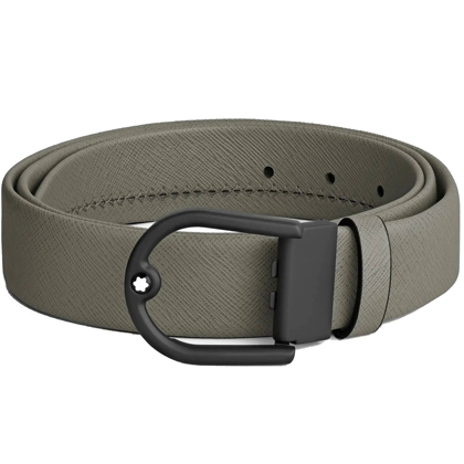 Кожаный ремень 35 мм из кожи серого цвета, пряжка в форме подковы от магазина премиальных ручек Premium Pens в Сызране.