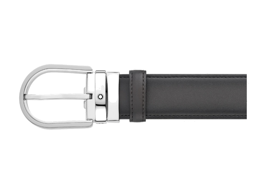 Кожаный ремень с пряжкой в форме подковы серого цвета 35 мм от магазина премиальных ручек Premium Pens в Сызране.